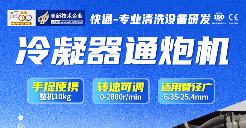 安徽快通是国家高新技术企业(GR202534002581),专注中央空调清洗设备,锅炉清洗机,管道检测机器人等