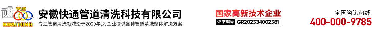 安徽快通是国家高新技术企业(GR202534002581),专注中央空调清洗设备,锅炉清洗机,管道检测机器人等